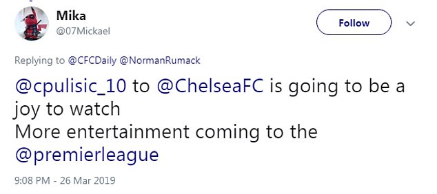 The goal sent one fan's imagination racing as he stated: 'Christian Pulisic to Chelsea is going to be a joy to watch. More entertainment coming to the Premier League.'