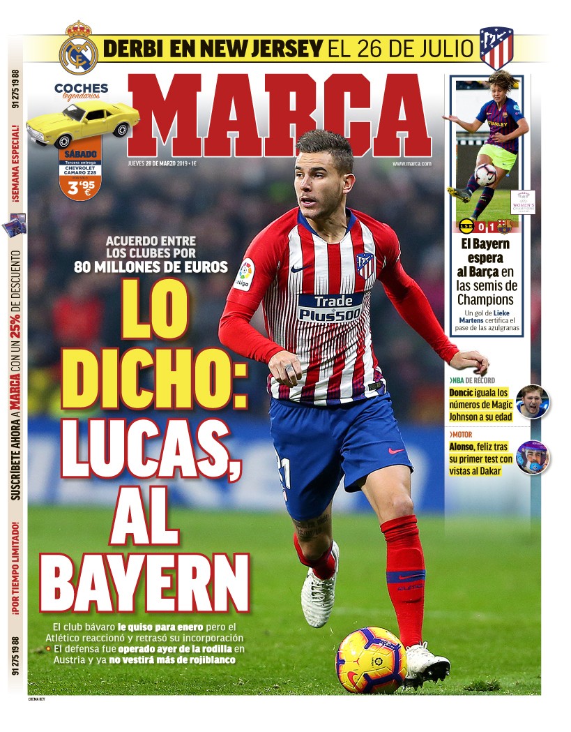 Portadas del día: Lucas al Bayern, los fichajes de Zidane, descanso a Messi...
