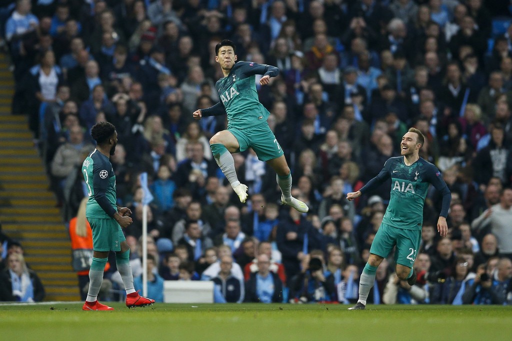 Son scored twice in Etihad Stadium as Llorente goal dumped Man City out to reach Champions League semi-finals.