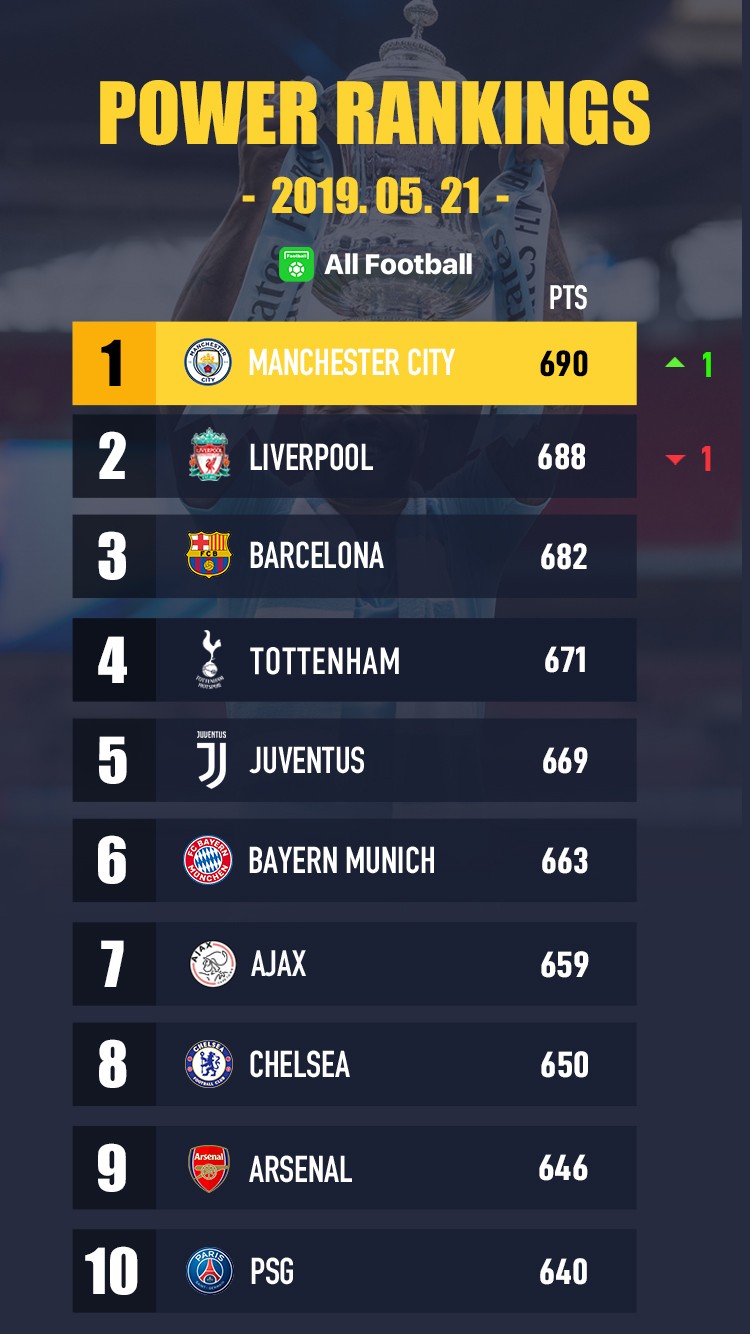 All Football Power Rankings of the Week: Man City go top before UCL & UEL finals