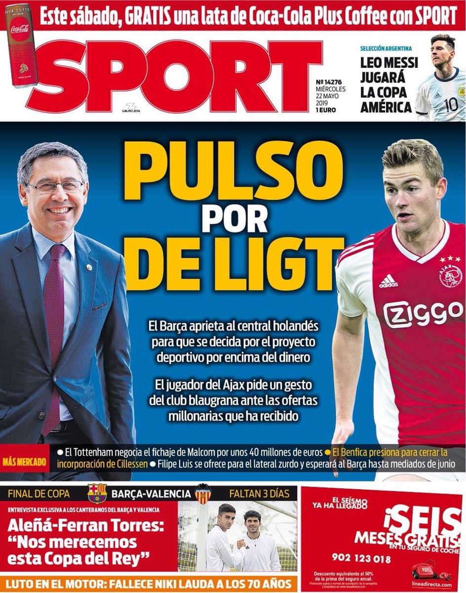 Portadas del Día: Varane se queda; Pulso por De Ligt; El Caso Bale...