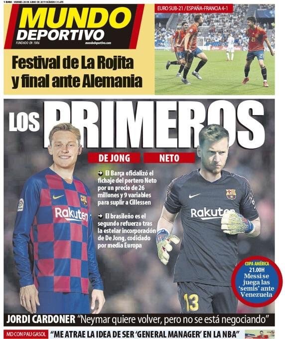 Portadas del Día: Los Neymar desembarcan en Barcelona, España sub21 a la final