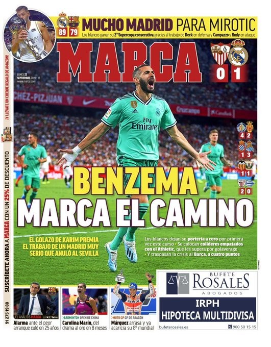 Portadas del Día: Benzema es el líder; Barça, con reacción urgente