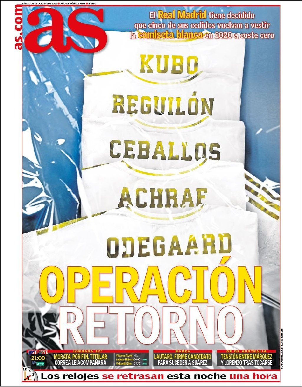 Madrid 'decide to recall 5 loanees in 2020 as Ceballos, Hakimi & Kubo included', to add to Mbappe transfer (AS)