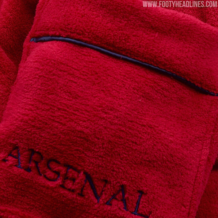 The dressing gown has a relatively dark red color and features a straightforward design with just the club crest on the left chest and a subtle 'ARSENAL' writing on the right pocket.