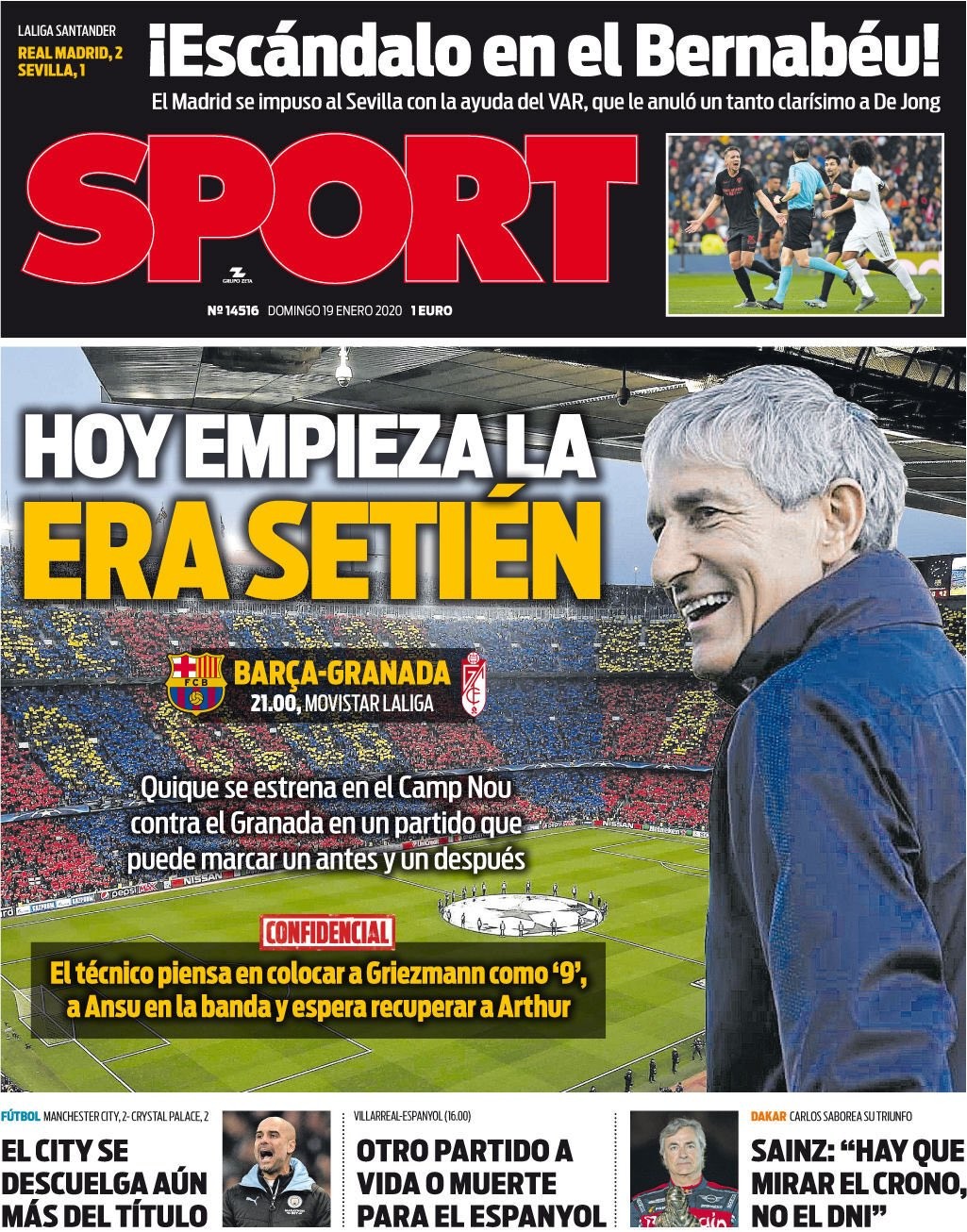 Portadas del Día: Hoy empieza la era Setién; Casemiro es el líder