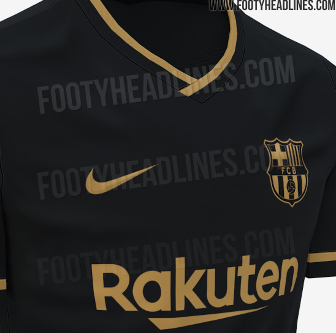 Total black? Barca 2020-21 away kit leaked with metallic-gold for logos & trim