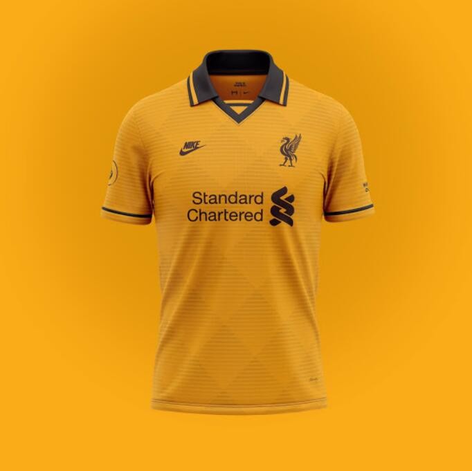 Completing the set, the Liverpool 20-21 concept third jersey is yellow with a large collar and a subtle gradient graphic on the front.