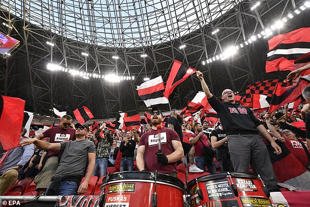 Djordje Kamber, who clinched the 2-1 victory over Mezokovesd-Zsory, was seen with a megaphone leading the celebrations at the front of one stand at the Puskas Ferenc Arena.