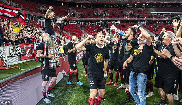 Budapest Honved players celebrated winning the Hungarian Cup final in front of a mass of fans who were not following social distancing on Wednesday.