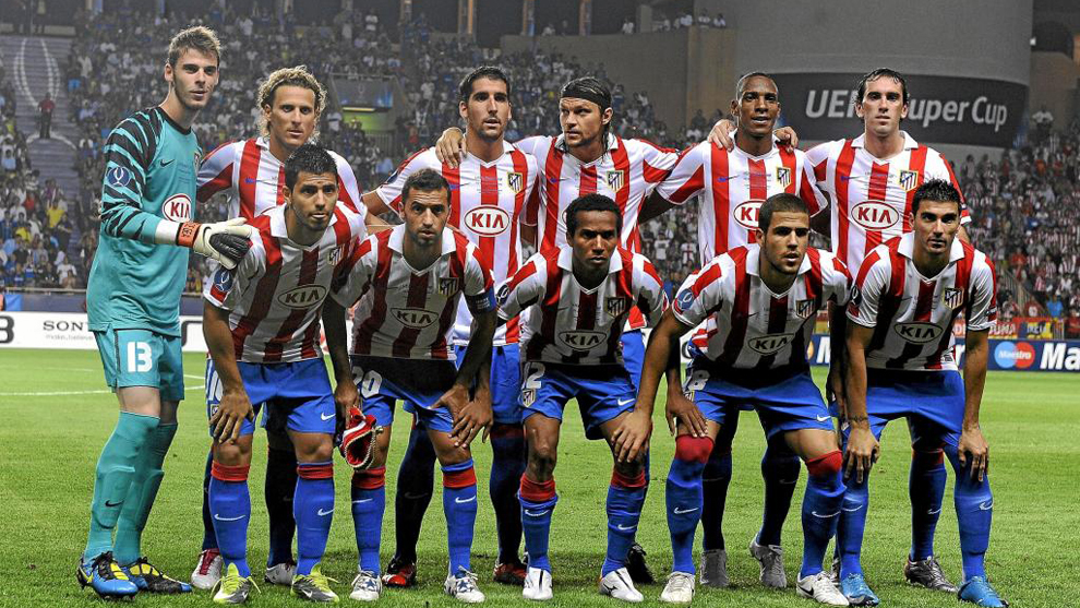 La alineación de ese día fue: De Gea; Ujfalusi, Perea,Godín, Domínguez; Simao, (Camacho), Assunçao, Raúl García, Reyes (Fran Mérida); Agüero y Forlán (Jurado).