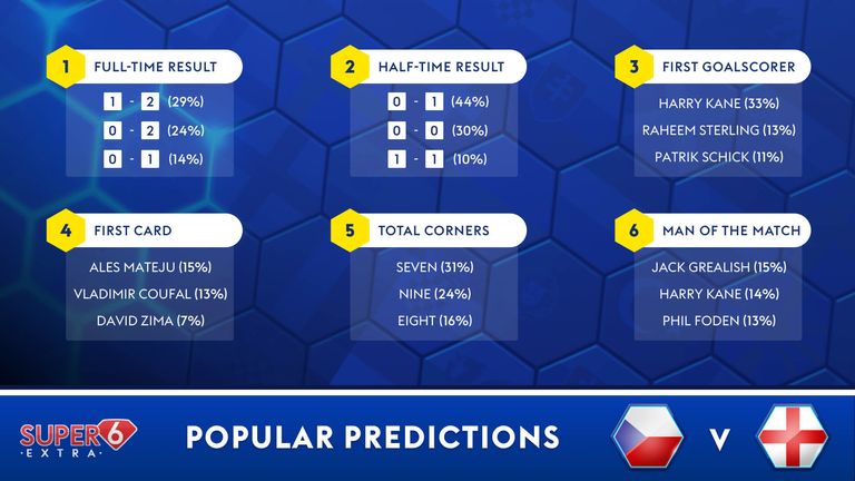 Saying that, the most popular selection currently stands at Czech Republic 1-2 England, with 29 per cent predicting this scoreline. The result and margin could be correct, but I would be leaning towards a fourth successive 1-0 win for the Three Lions.