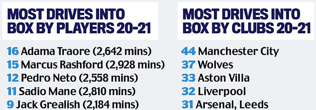 Yet I'd say Grealish is better than both of them at driving at the opposition. So although the statistics say City are already the best at finding ways into the box, we can expect them to be even better at that this season.