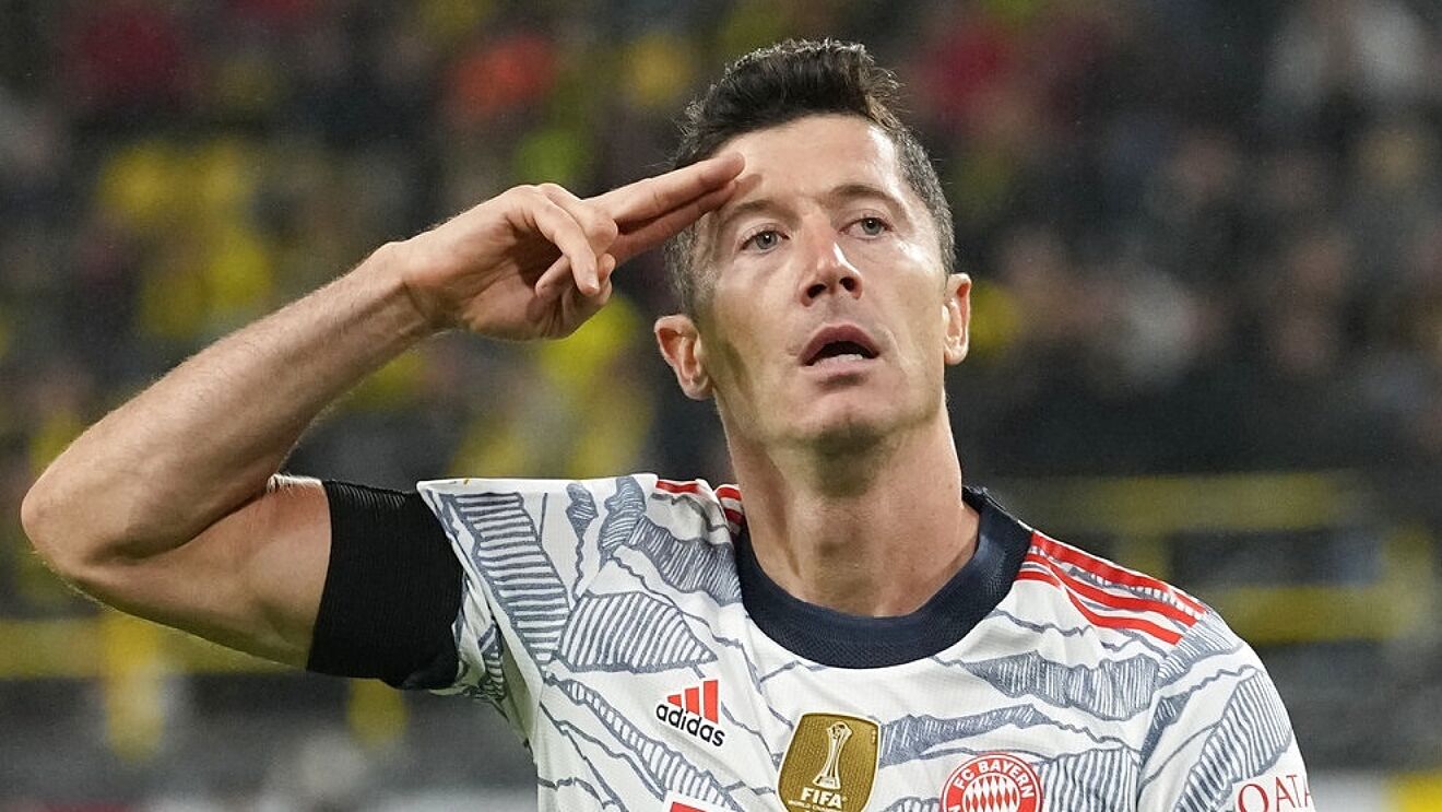 The Poland star, who scored a record 41 goals in the Bundesliga last season, opened the scoring in the 41st minute and got the decisive third goal in the 74th after Marco Reus had pulled one back for Dortmund.