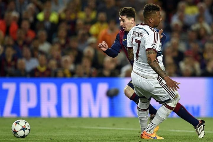 With ten minutes to play the Barcelona number, ten picked up the ball from Ivan Rakitic on the Bayern left. Boateng sprinted to get himself back into position and immediately applied the breaks once he'd managed to get goalside of his man.