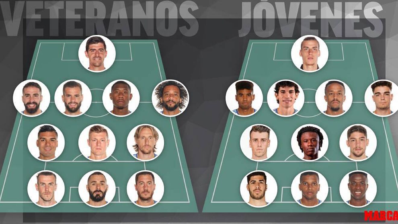 On the one hand, Ancelotti could opt for a starting XI with an average age of 31 years old, or another with an average age of 21.6 years old.
