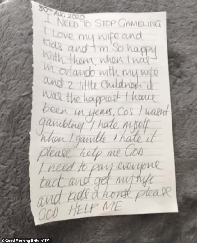 During the first lockdown, the 53-year-old penned a note, in which he said he 'hated' himself when he gambled, and pledged to buy a house for his wife and children.