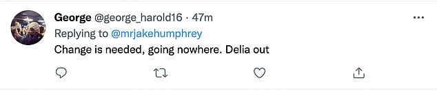 A third simply wrote: 'Change is needed, going nowhere. Delia out.'