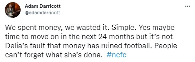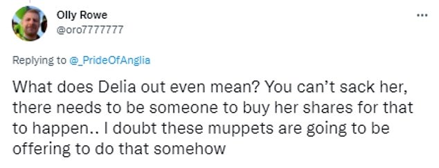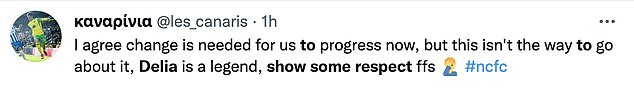 Another Delia fan said she is not the cause of the club's performance issues, writing: 'I agree change is needed for us to progress now, but this isn't the way to go about it, Delia is a legend, show some respect.'