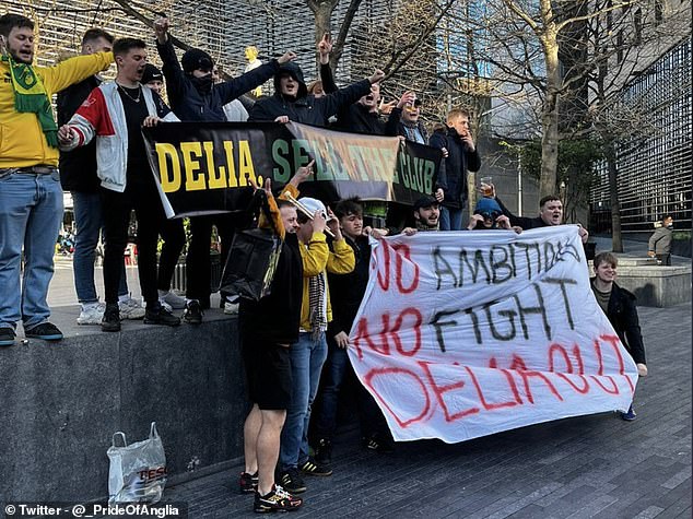 Despite the club advancing to the fourth round of the FA Cup after beating League One side Charlton 1-0 at The Valley, a group of frustrated fans protested outside Carrow Road, accusing Delia of having 'no ambition, and no fight', and calling for her departure from the club.