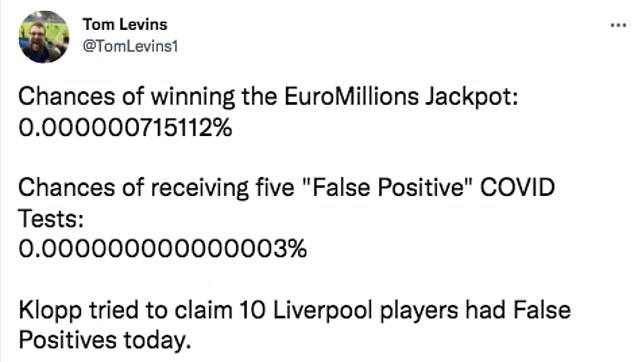 'Klopp tried to claim 10 Liverpool players had false positives today.'