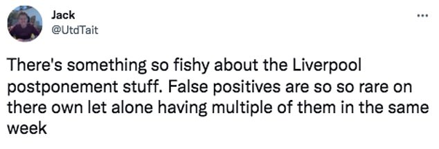 Another said: 'There's something so fishy about the Liverpool postponement stuff.