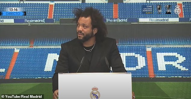 He said: 'Today we say thank you to our great captain, one of our biggest legends. The player with the most titles in the history of Real Madrid. Marcelo.'