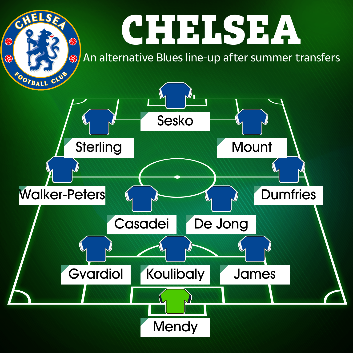 CHELSEA could line up with SEVEN new signings this season.