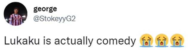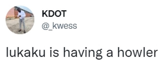 Users ripped into the substitute after the missed chances, with one fan writing: 'Two howlers from Lukaku in two minutes'.