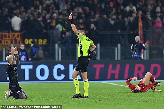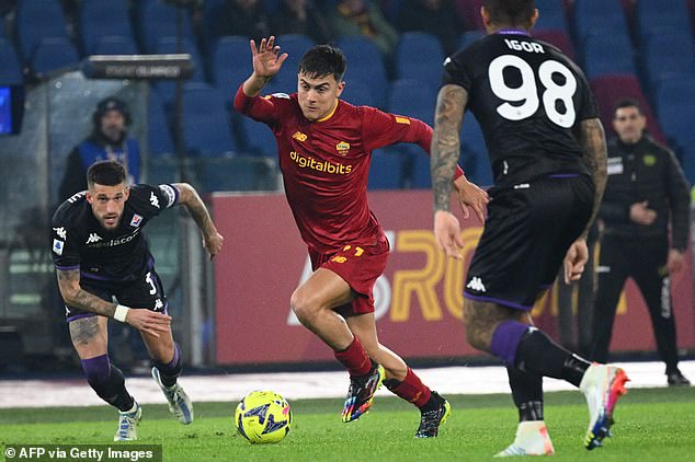 Paulo Dybala scored both goals in Rome - both on assists from Tammy Abraham. Fiorentina had to play most of the match with 10 men after Dodô was sent off in the 24th minute following a second yellow card.