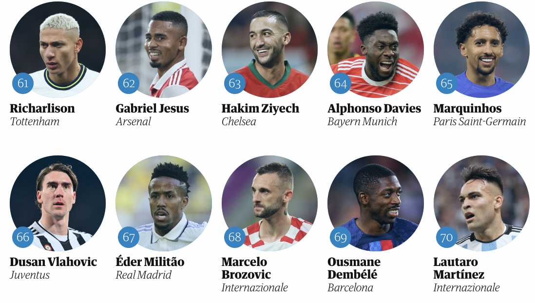 The top 100 male footballers of 2022 Nos 70-21 have been ranked – and Cristiano Ronaldo doesn’t even make the top 50.