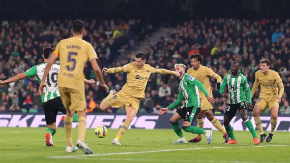 Barca had won their last three league games 1-0 heading into Wednesday's game at the Estadio Benito Villamarin, and that scoreline looked likely again when Raphinha gave them a second-half lead after quick thinking from Frenkie de Jong to take a smart free kick and good work from Alejandro Balde.