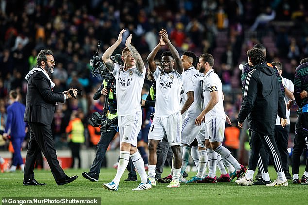 But he didn’t look too down when he shouted to his players: ‘Tomorrow is a day off!’ in the dressing room video that went viral after beating Barca. He has all the players on side as they try to finish with a European and Spanish cup double. He’s under no pressure — it’s more about how it ends this June, not whether it will or not.