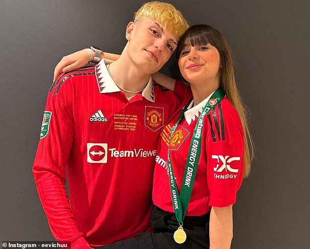 Garnacho posted the message alongside a series of photos with his partner, Eva Garcia, with one photo showing them holding up a Manchester United baby kit with his name on the back.