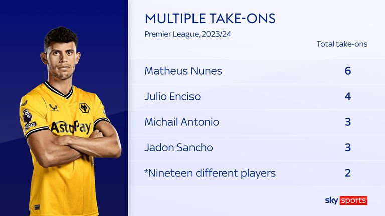 The numbers are similar to those of City midfielders Rodri and Mateo Kovacic. But while those two are often moving into space, Nunes is finding a path through opposition players. He has attempted more take-ons than any Premier League player this season.