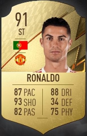 Ronaldo was awarded a 91 rating by the video game giants, who generously rewarded him for his nine-goal Premier League haul that season.