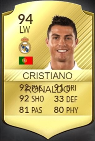 In FIFA 17, Ronaldo usurped his rival to clinch the title as the game's highest rated player - as he boasted a 94 overall rating.