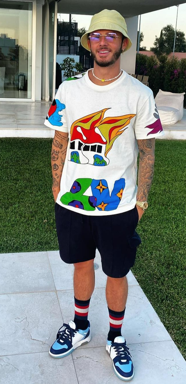 THE Tottenham icon is perhaps hoping to get a-head in the fashion stakes in this bucket hat, shorts and t-shirt combo.