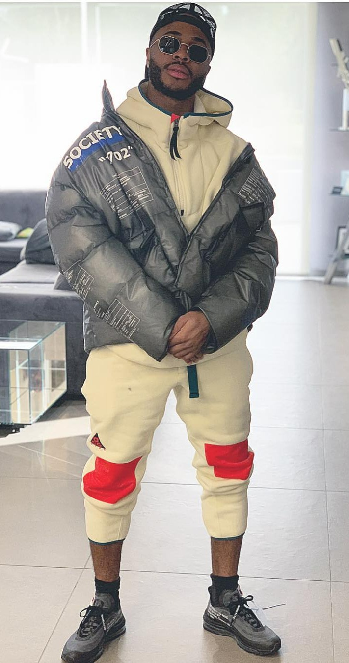 A JACKET that hangs off the shoulders may become tyre-some for Raheem – whose puffed-up outfit could be a nod to the Michelin Man.