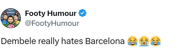 One fan claimed that Dembele 'really hates Barcelona' on X, formerly Twitter, after seeing his reaction.
