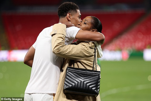 After being handed his winner's medal on the podium, Bellingham made an almost immediate beeline to his mother and placed the award around her neck.