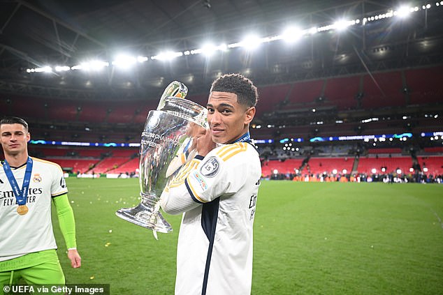 Bellingham, 20, set up Vinicius Junior for Madrid's second goal in their 2-0 victory against Borussia Dortmund and lifted the famous trophy for the very first time.