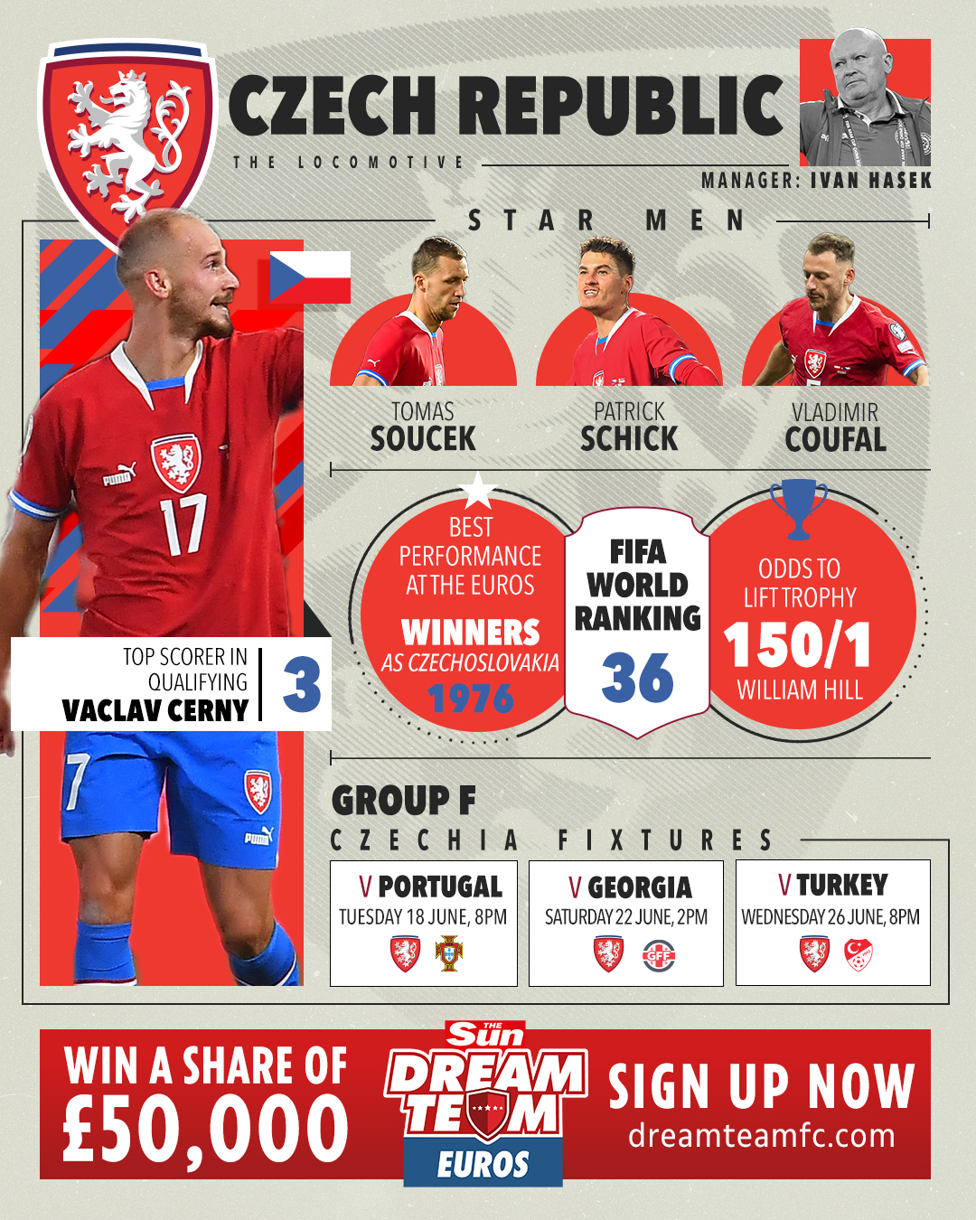 The Bayer Leverkusen forward’s slightly fortunate effort means he now has six goals for the Czech Republic at the Euro finals – more than any other player in history.