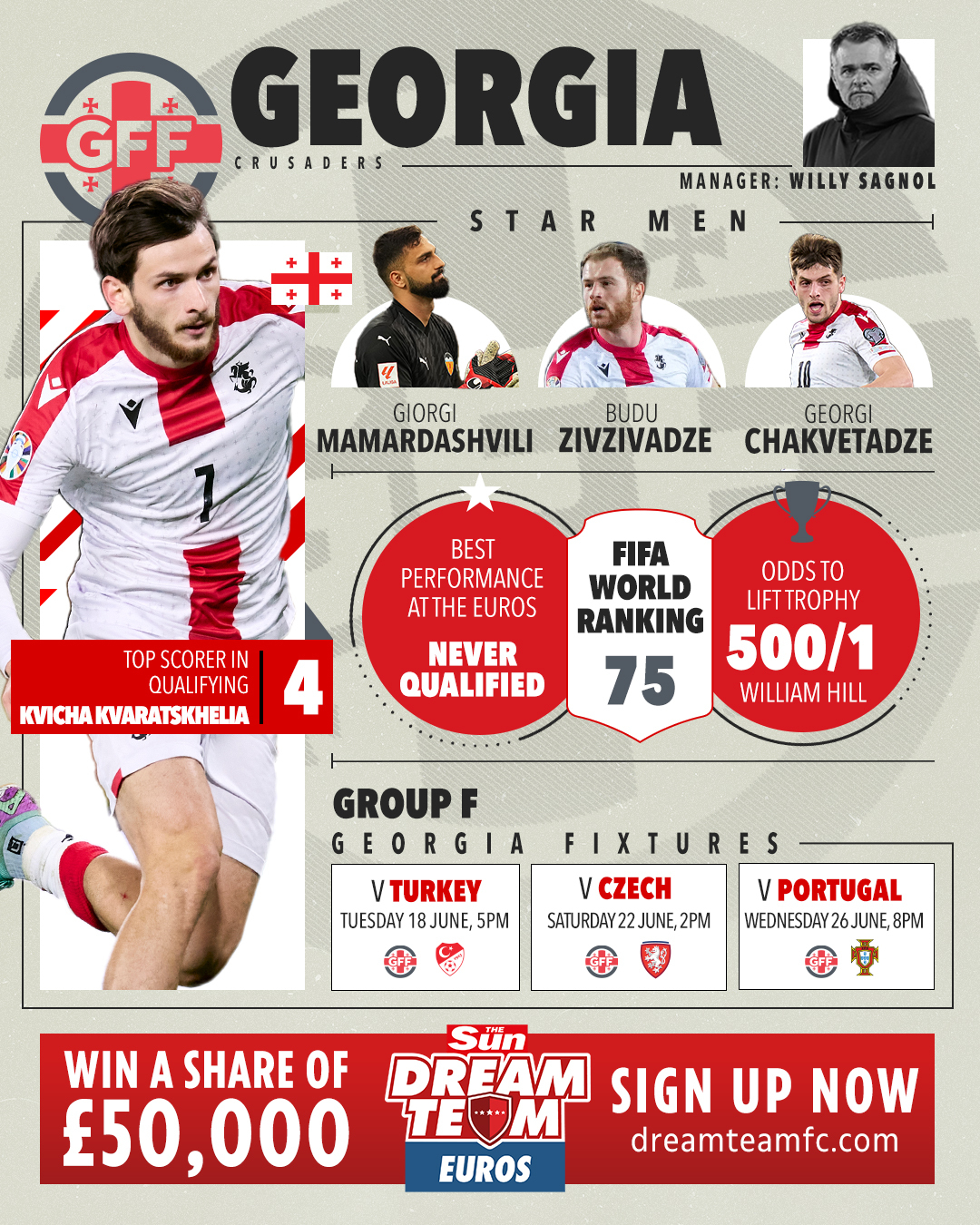 Georgia had looked a threat on the break but struggled to create much until right on the stroke of half-time when star man Kvicha Kvaratskheila whipped over a free-kick.
