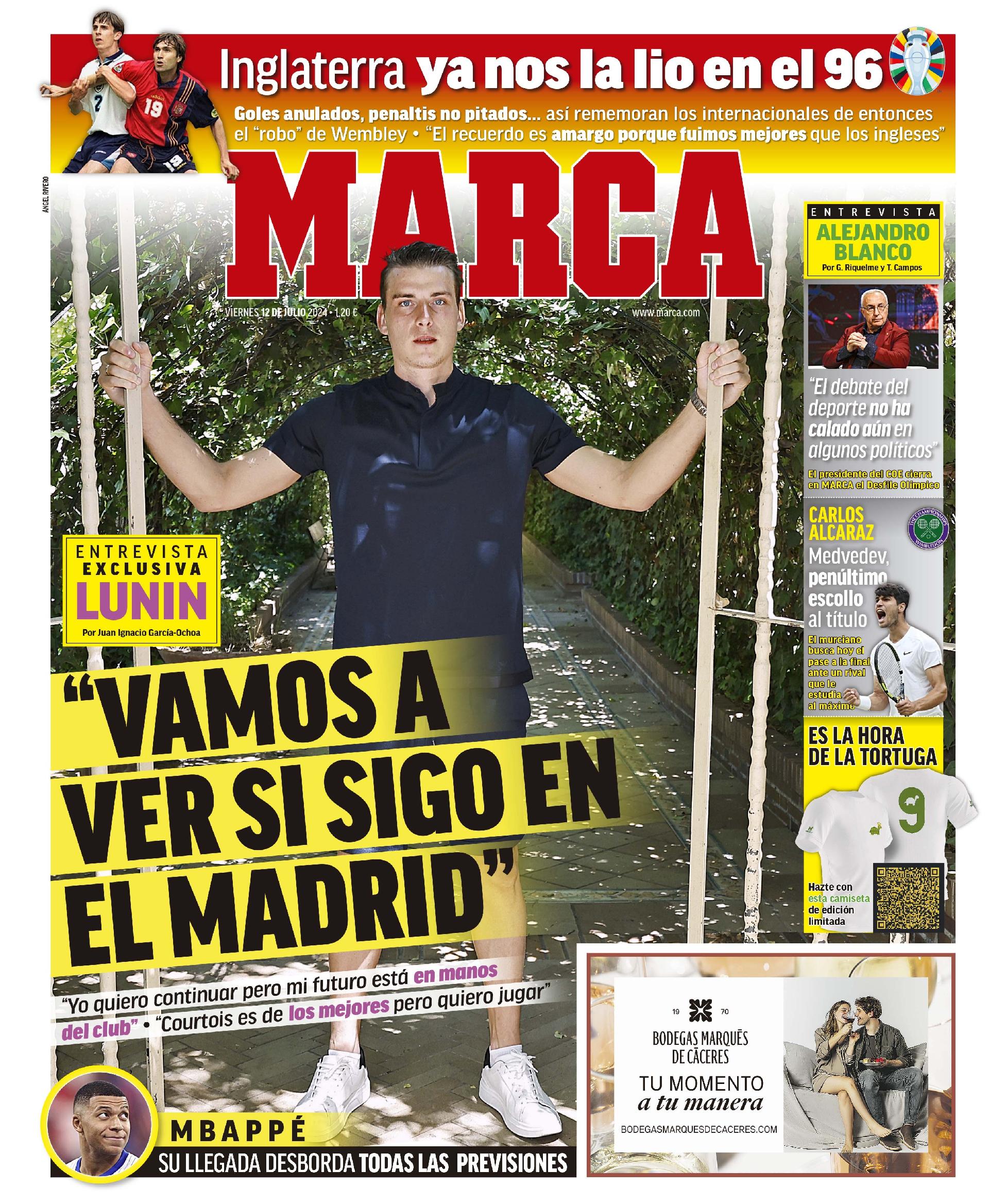 卢宁接受了《马卡报》的专访,《马卡报》今日头版透露了部分内容,卢宁说道:“我想继续留在这里,但我的未来掌握在俱乐部手中,库尔图瓦是最好的门将之一,但我也想上场比赛。”“看看我是否会继续留在皇马。”