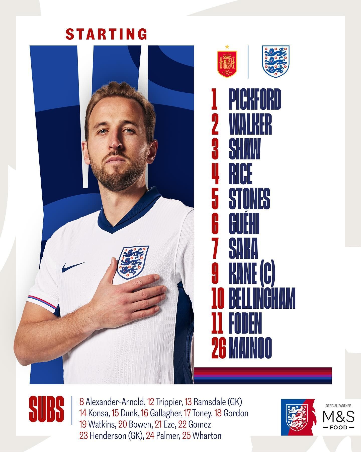 2024年欧洲杯决赛英格兰队首发