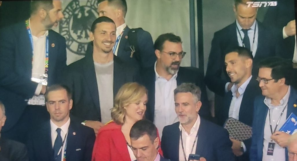 从电视转播画面中可以看到,目前为米兰的投资方红鸟资本担任顾问的伊布拉希莫维奇和米兰技术总监蒙卡达(从伊布向右数第二位)都出现在了柏林奥林匹克球场的看台上,他们看起来就像是专门来见证米兰新援夺冠的一样。