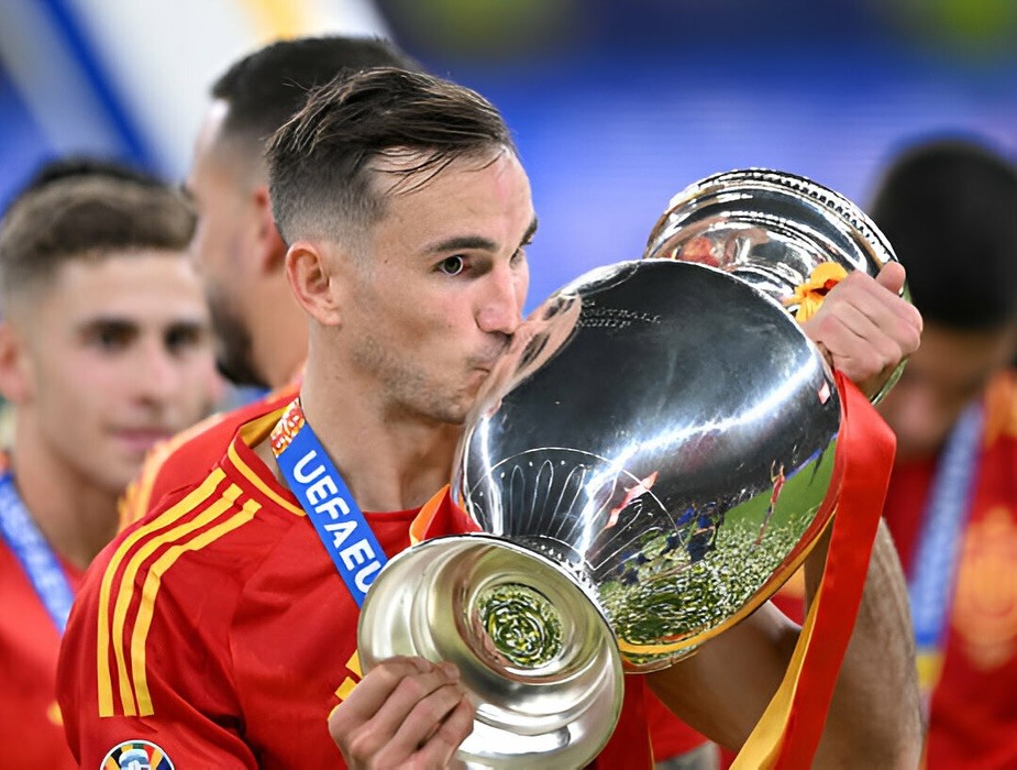 亲吻欧洲杯冠军奖杯,法比安-鲁伊斯发文庆祝:我们是冠军