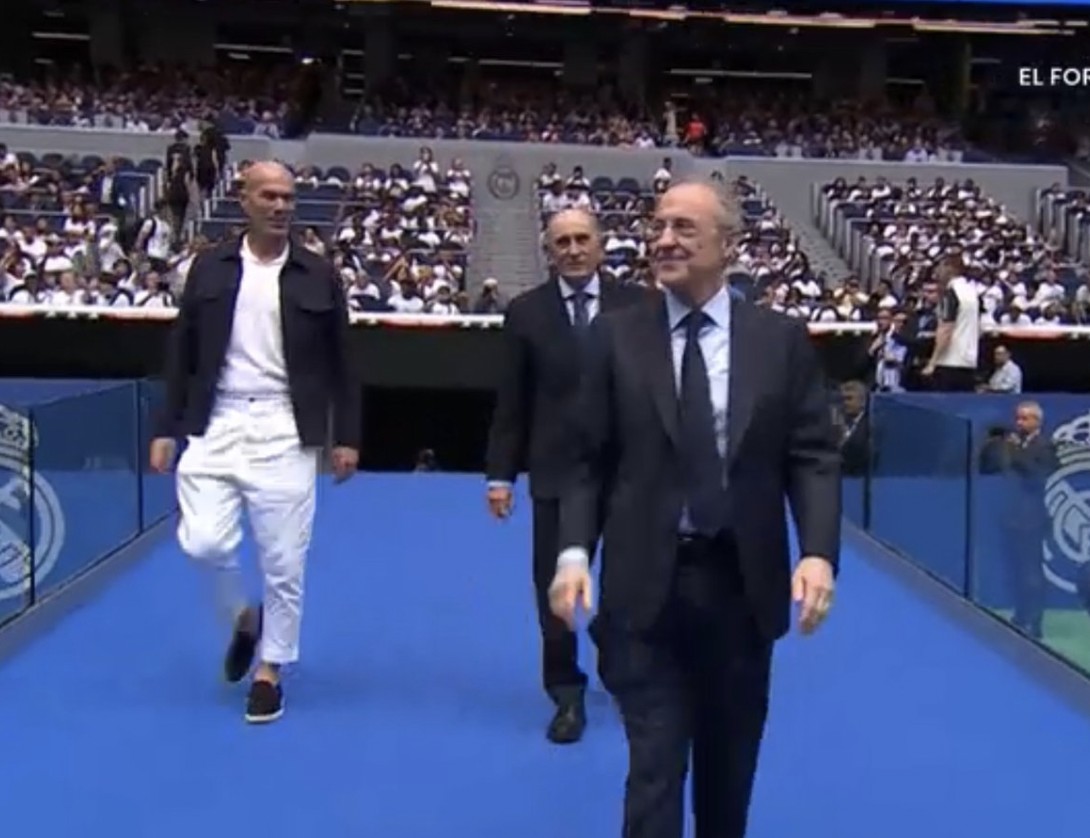 在姆巴佩的皇家马德里亮相仪式中,皇马名宿齐达内现身。