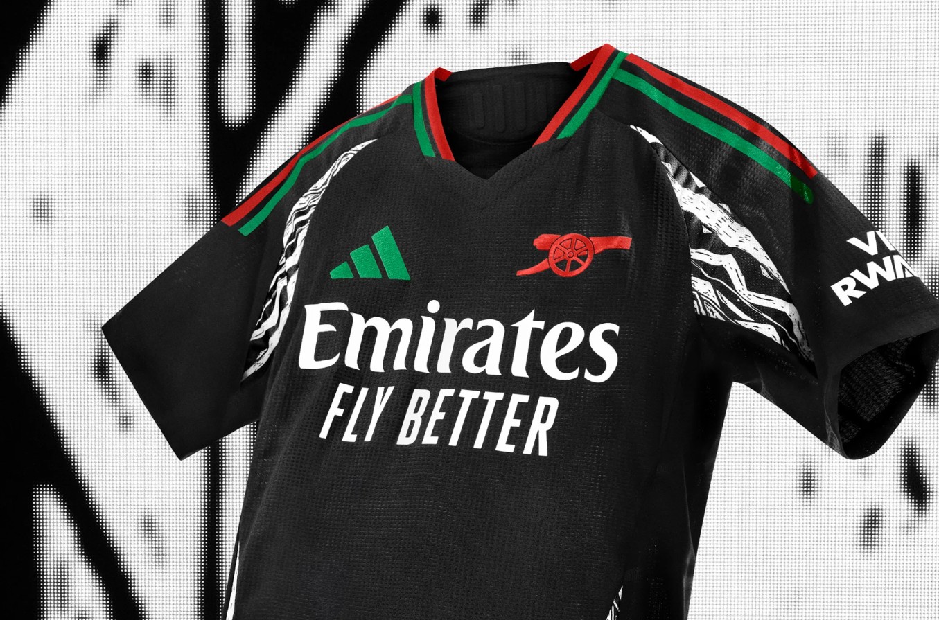 通过借鉴非洲大陆的设计传统,庆祝俱乐部与非洲球迷的联系,这款球衣采用了传统的泛非颜色——黑色、红色和绿色,并由Labrum London创始人Foday Dumbuya设计了一款引人注目的白色之字形图案。